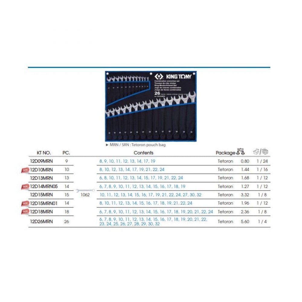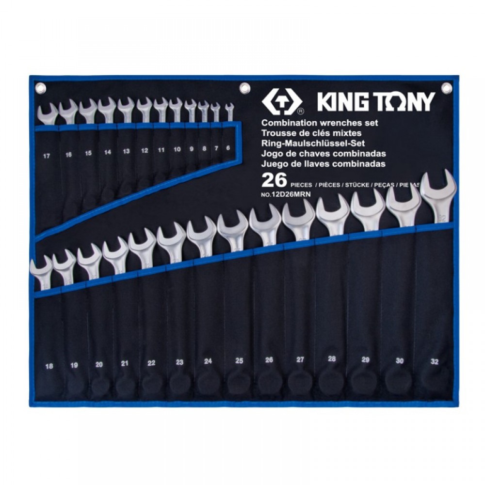 Набір ключів комбінованих 26 шт. (6-32 мм) KING TONY 1226MRN РОЗМІРИ: 6, 7, 8, 9, 10, 11, 12, 13, 14, 15, 16, 17, 18, 19, 20, 21, 22, 23, 24, 25, 26, 27, 28, 29, 30, 32