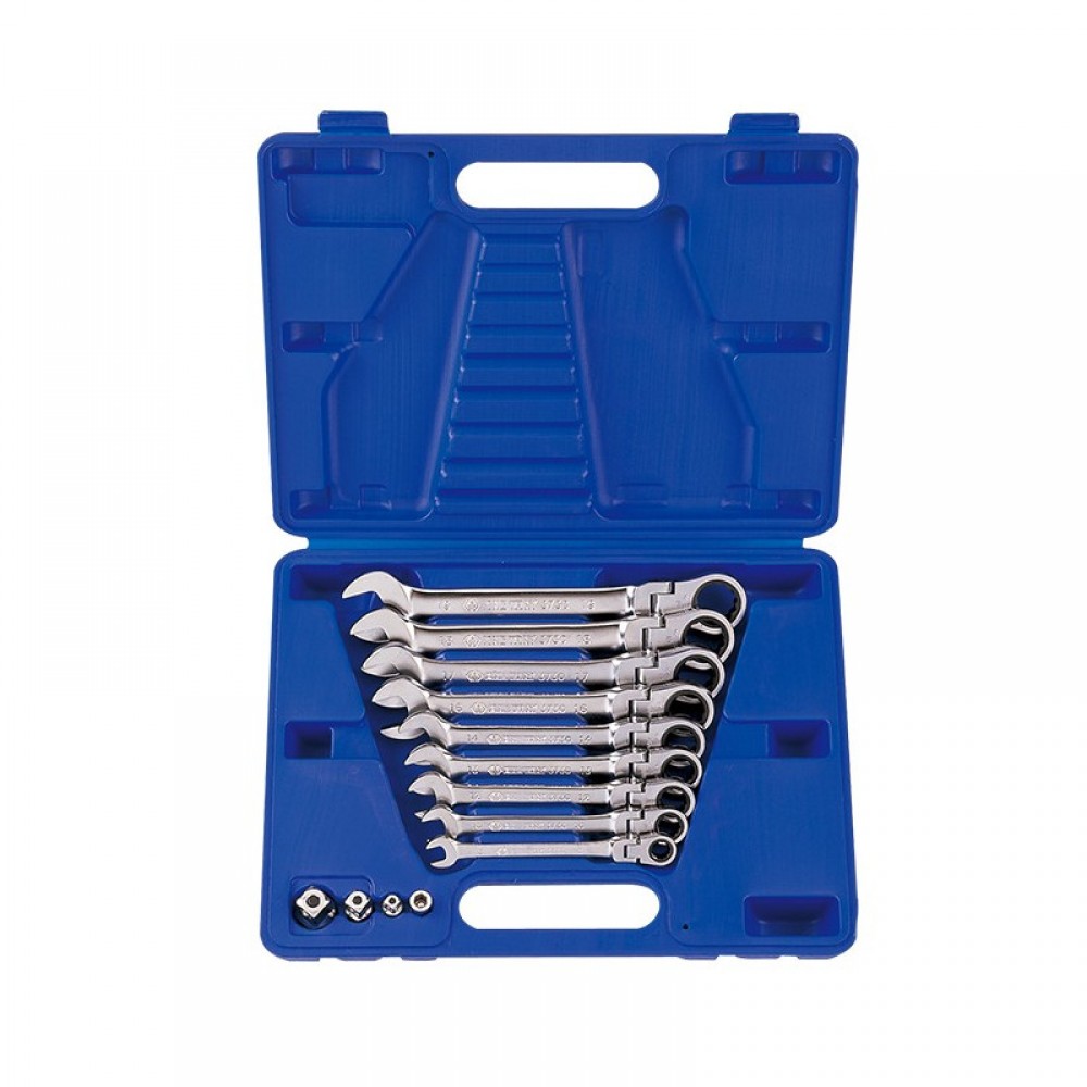 Набір ключів комбі з тріскачкою та шарніром 8-19 мм 9 ін. Комплектація даного набору складається з розмірів, що найчастіше застосовуються як в автослюсарній майстерні, так і при застосуванні в побуті. Кейс, в якому розміщені ключі, зручний при зберіганні, а розмістивши набір на робочому місці - або верстаті, ви завжди матимете можливість вибрати ключ, який необхідний в даний момент. Ключі, серії 3730: 8, 10, 12, 13, 14, 16, 17, 18, 19 мм Кількість ключів: 13 шт 373202H 373202R 373203R 373204R Вага: 1.64 кг