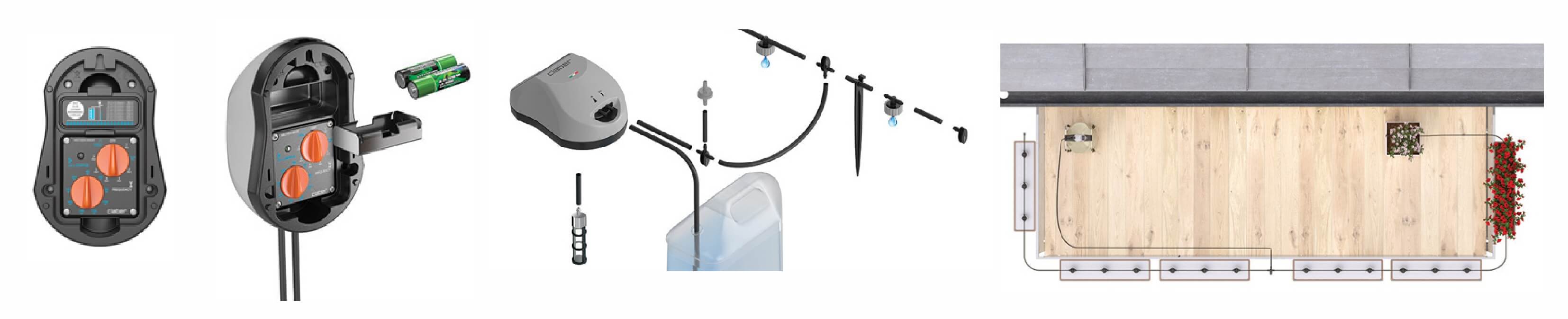 Включає в себе таймер, фотогальванічну панель і вбудований насос для забору води з будь-якого резервуара, фільтрації та подачі її до 20 крапельниць.