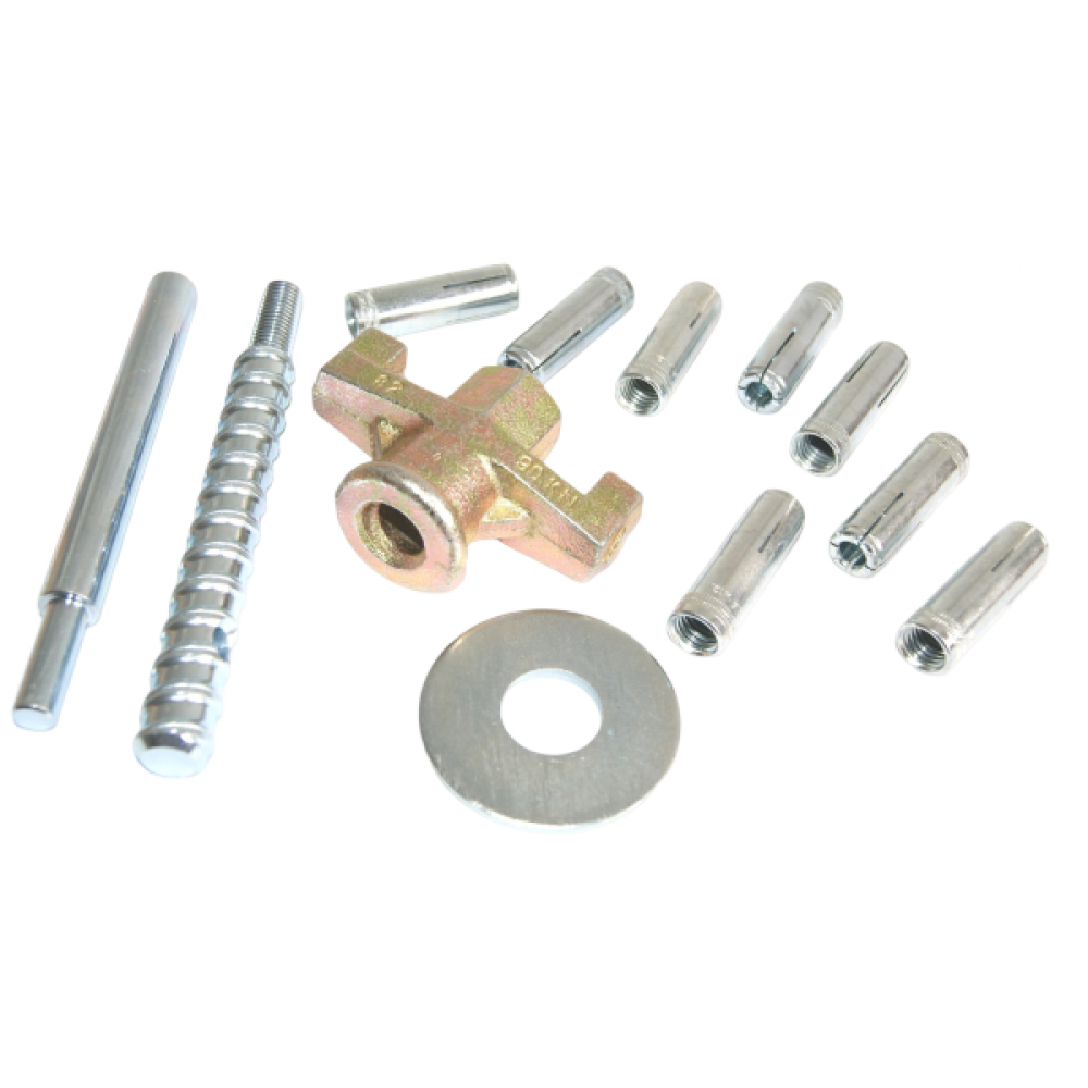 - Дюбелі (10 шт.); - добійник; - шайба; - затискний гвинт; - штифт; - упаковка