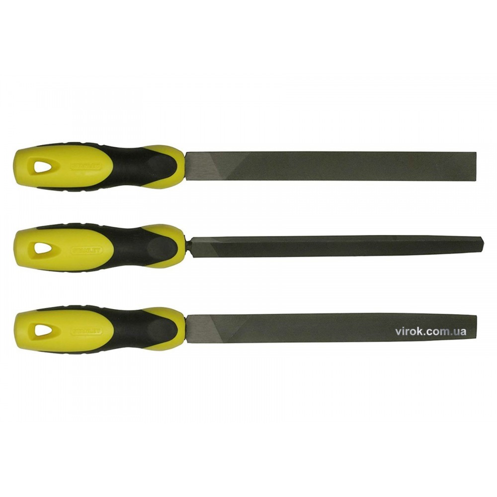 Набір напильників STANLEY 0-22-445 складається з трьох напильників довжиною 150 мм: плоского, круглого і трикутного. Виготовлені з вуглицевої сталі.