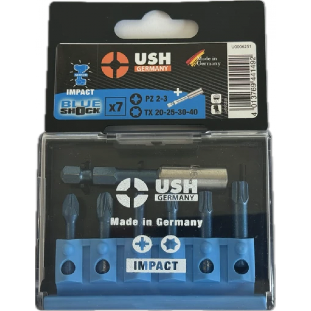 Набір насадок викруткових Blueshock USH: 1/4", PZ2-3; T20-25-30-40, магнітний тримач, 7 елем.