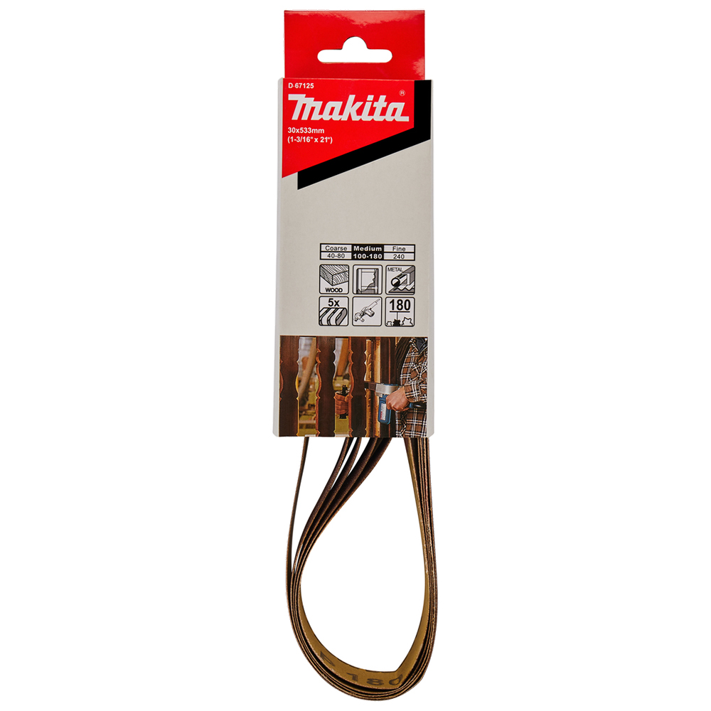 Опис Набір шліфувальних стрічок 30х533 мм К180 (5 шт.) Makita D-67125