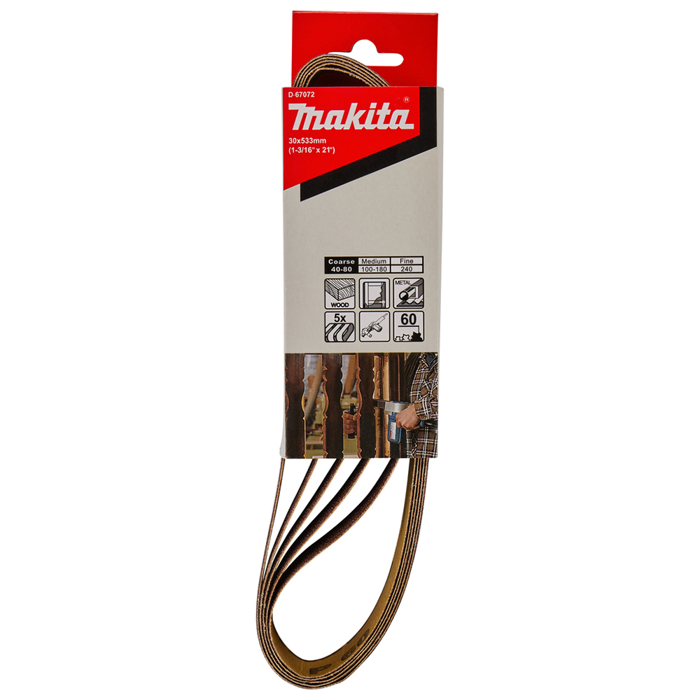 Опис Набір шліфувальних стрічок 30х533 мм К60 (5 шт.) Makita D-67072