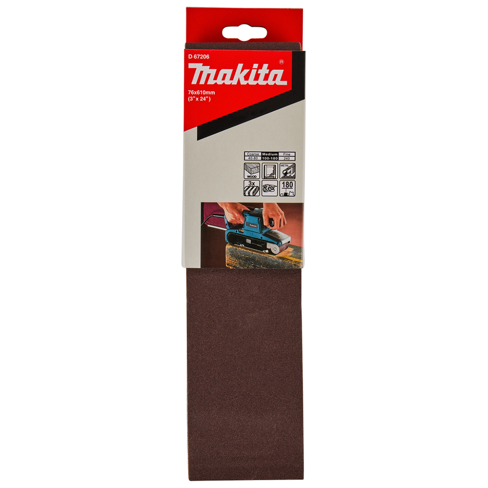 Набір шліфувальних стрічок 76x610 мм А180 (3 шт.) Makita D-67206: Для бездоганного фінішного шліфування та полірування