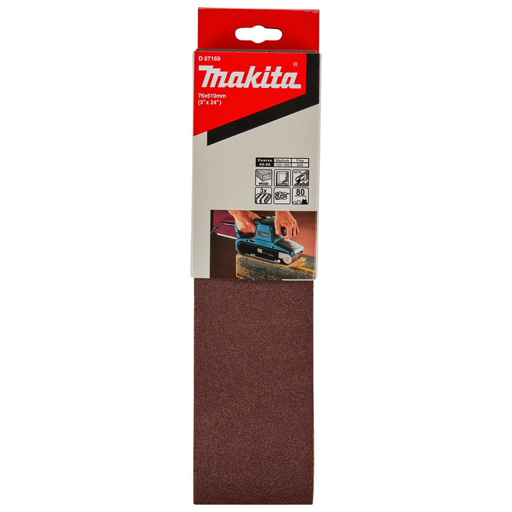 Набір шліфувальних стрічок 76x610 мм А80 (3 шт.) Makita D-67169: Баланс ефективності та якості для універсального шліфування