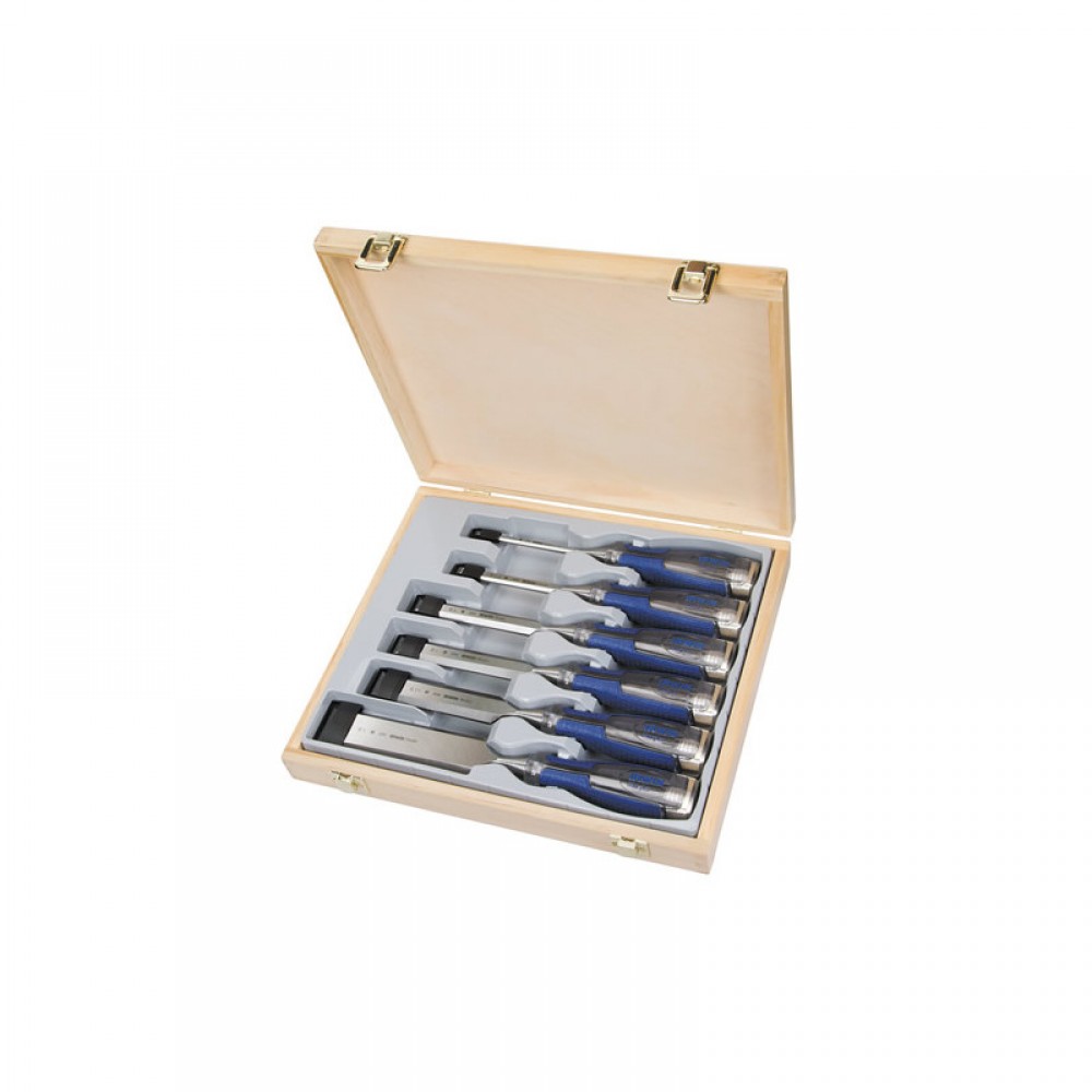 Набір стамесок МS750 у дерев'яній коробці 6 шт.(6,10,15, 20,25,35) IRWIN Набір стамесок серії МS750 призначений для теслярських та столярних робіт у важких умовах. Рукоятки з безосколкового матеріалу – ацетатний пластик, для ще більшої довговічності. Ще більша ударна головка, здатна витримати удари молотком під різними кутами. Повністю кований сталевий сердечник для кращої передачі зусилля від ручки до леза. Лезо загартоване та відпущене для довговічності. Виготовлені з якісної сталі та мають набагато гострішу ріжучу кромку, що спрощує та прискорює роботу. Гартовані перші 25 мм наконечників. Комплектуються ковпачком на кінчик леза, оскільки заточені і дуже гострі. Склад набору: Стамеска МS750 - 6мм Стамеска МS750 - 10мм Стамеска МS750 - 15мм Стамеска МS750 - 20мм Стамеска МS750 - 25мм Стамеска МS750 - 35мм Дерев'яна коробка з пластиковим ложементом.