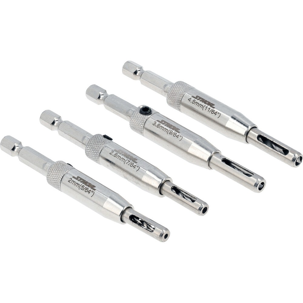 Набір із 4 самоцентруючих свердел, призначених для свердління дерева, пластику та м'яких металів.