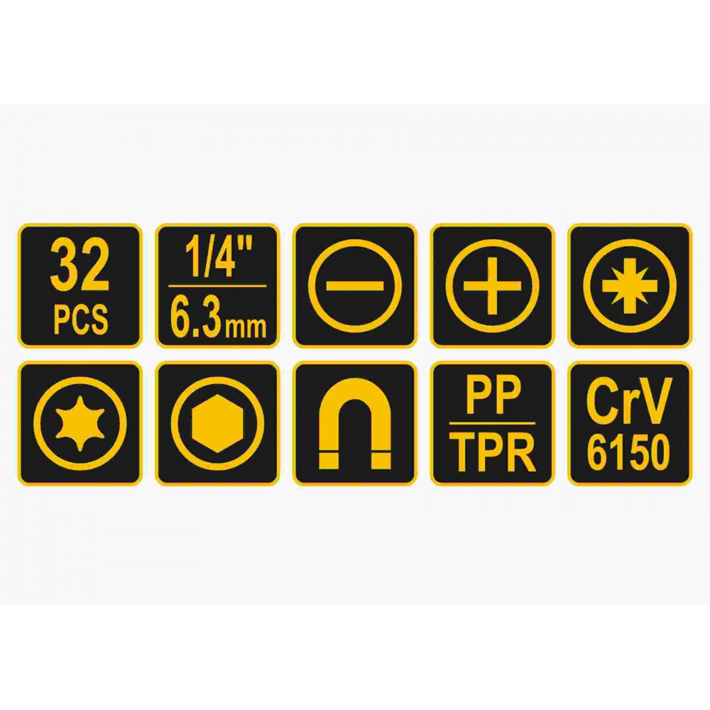 Особливості Набору викруток і викруткових насадок VOREL 60785