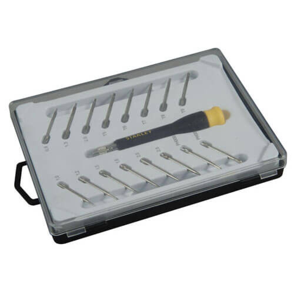 Кейс;Цанговий отверточних держатель;Отверкой під шестигранник ″Hex″: 0.9, 1.3, 1.5, 2;Викрутки під шліц ″Torx″: T5, T6, T7, T8,Викрутки під плоский шліц Sl 1, 1.2, 1.5, 1.8, 2, 2.5 мм;Викрутки під шліц ″Phillips″: Ph00, Ph000.В упаковці.