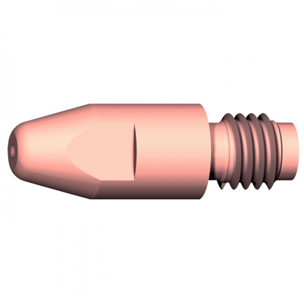 Контактний наконечник для MIG/MAG зварювання алюмінієвого дроту Ø 1,2 мм, забезпечує підведення зварювального струму від пальника до дроту.Характеристика:Матеріал: E-Cu (електролітична мідь), оброблений для роботи з алюмінієвим дротом (Alu).Різьба: M8Діаметр отвору (D): 1,2 мм (для алюмінієвого дроту).Довжина наконечника: 30 мм.Зовнішній діаметр: 10 мм.
