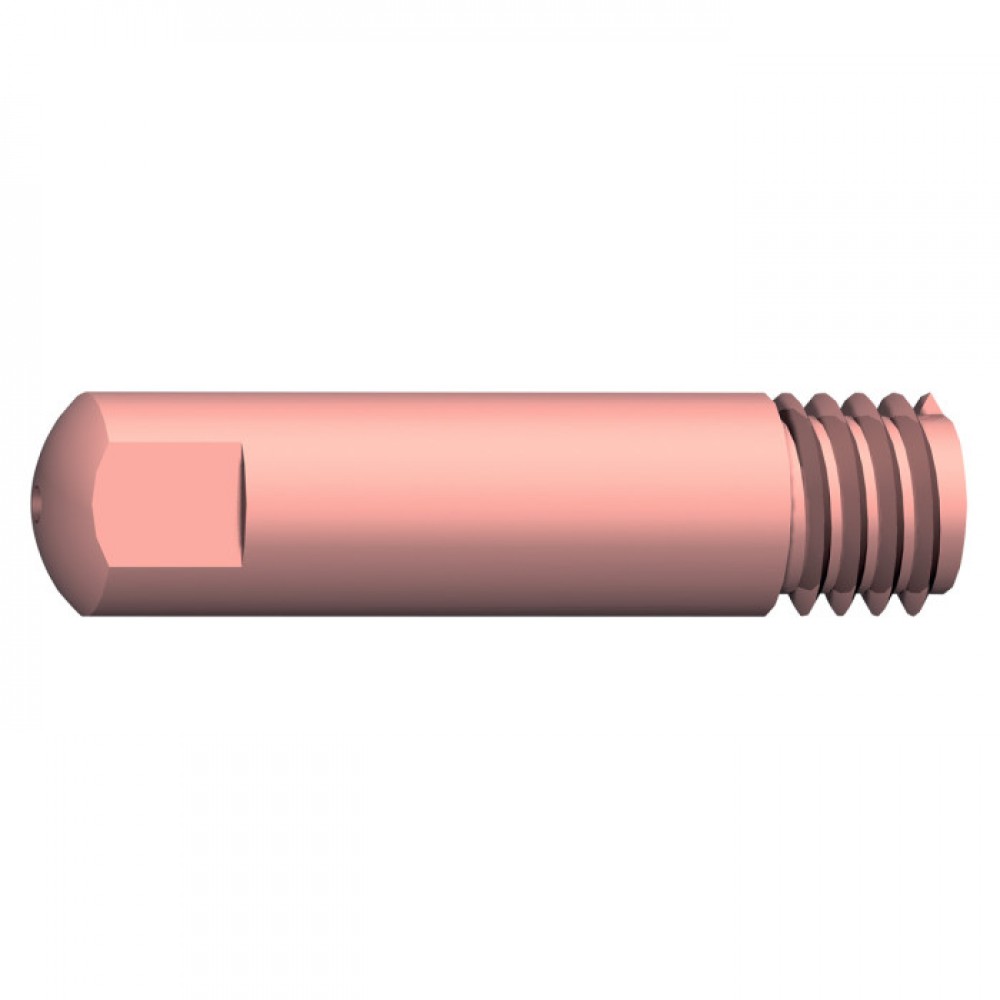 Контактний накінечник із високоякісної електролітичної міді (E-Cu), призначений для подачі зварювального дроту діаметром 0,6 мм у процесі зварювання MIG/MAG. Забезпечує точну стабільну подачу дроту та ефективне проходження зварювального струму.