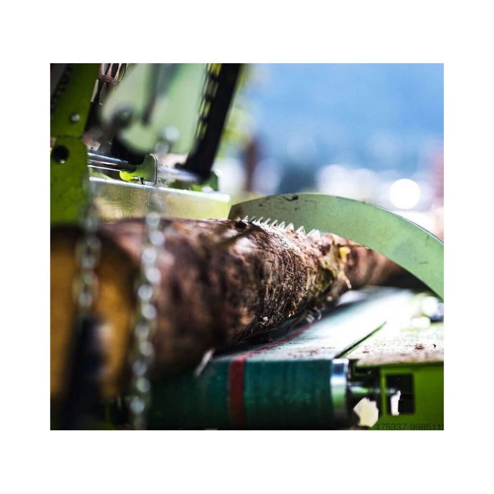 Додаткове обладнання, таке як підйомник колод або ланцюговий конвеєр, ще більше полегшує робочий процес. Ланцюговий конвеєр дозволяє завантажувати кілька колод за допомогою вилкового навантажувача, крана або фронтального навантажувача, усуваючи необхідність піднімати одну колоду за раз.