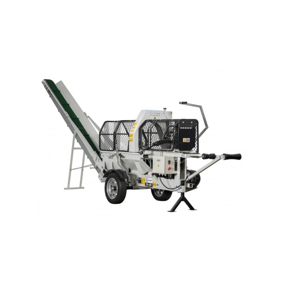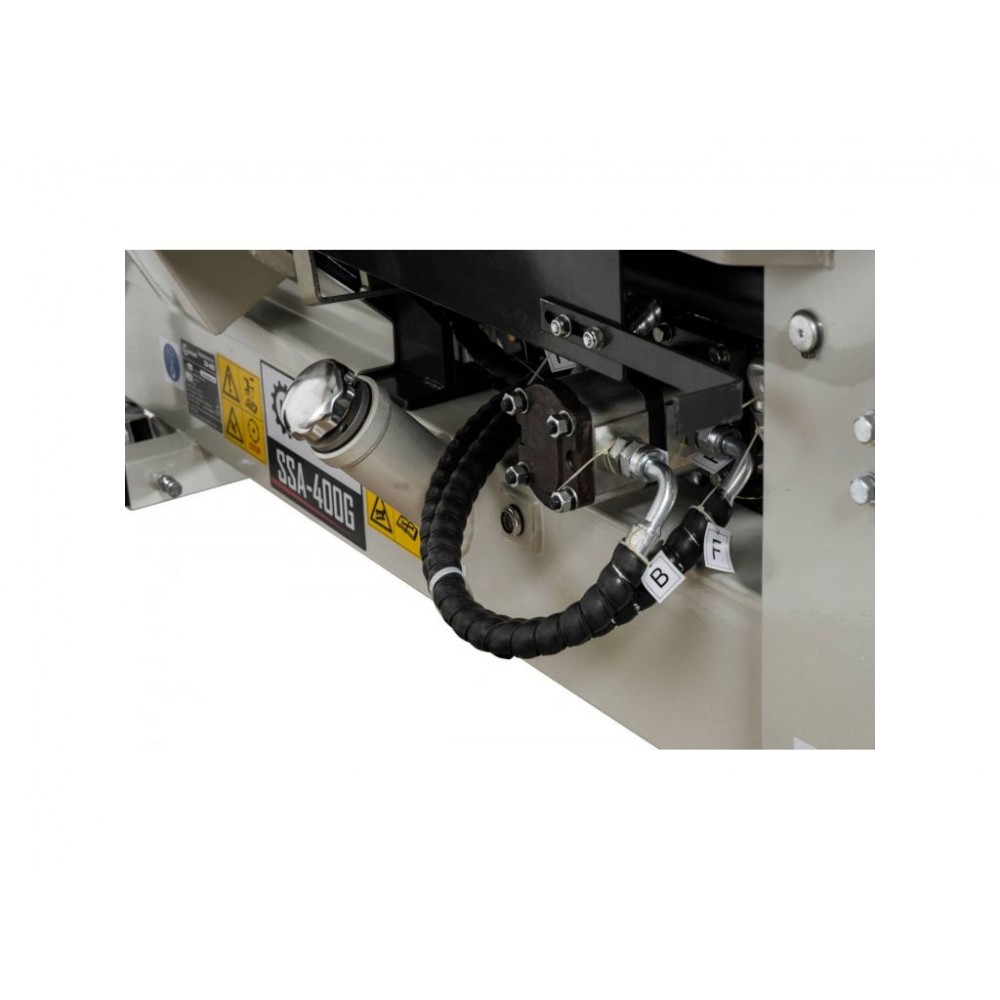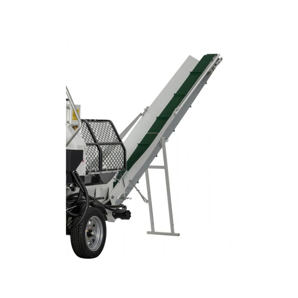 Верстат Lumag SSA 400G у своїй базовій комплектації має конвеєрну стрічку довжиною 3,2 м, яка транспортує розколоті шматки дерева безпосередньо в причіп або певне місце.