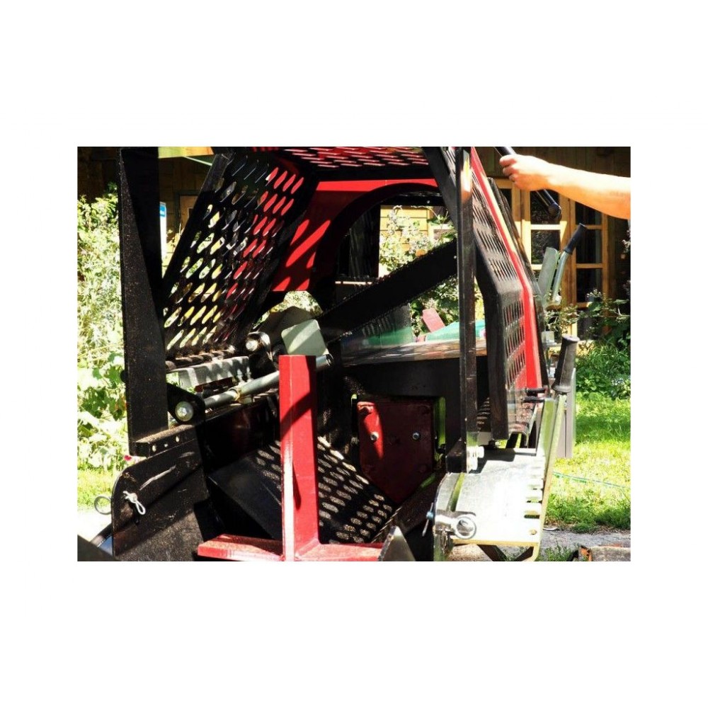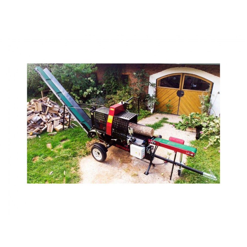 Ланцюгова пила зі швидкістю 4800 об/хв і направляючою 450 мм розрізає колоду на потрібну довжину, а клин розколює її на 4 частини. Час робочого циклу становить 7-10 с. Корпус машини міцний і стійкий до пошкоджень. Для легкого транспортування є шасі і фаркоп. Обладнання для заготівлі дров, представлене на нашому сайті, поставляється напряму від найкращих європейських виробників, тому має високу якість і вигідну ціну.