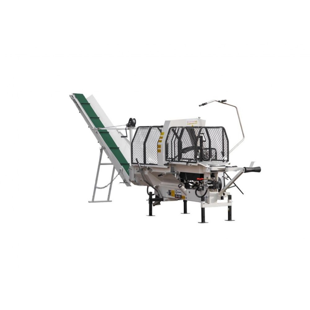 Обробка колод досить зручна на цьому верстаті, так як процес різання і розколу виконується за один прохід, а хрестоподібний дільник, що є в комплекті поставки, розколює колоду на 4 частини із зусиллям в 20 тонн.