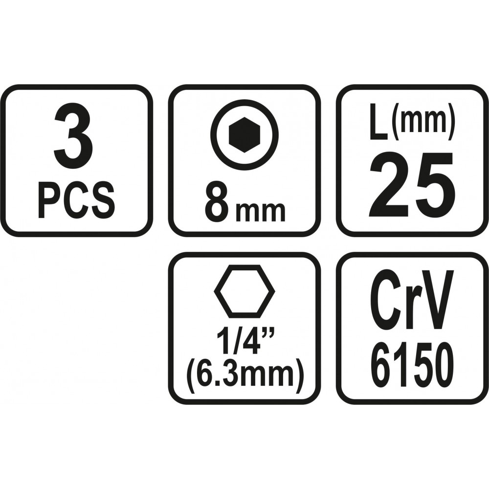 Викруткова насадка H8 - 1/4" STHOR довжиною 25 мм, призначена для використання з шуруповертами та гайковертами. Фрезерований профіль з піскоструйною обробкою, захищений антикорозійним покриттям.