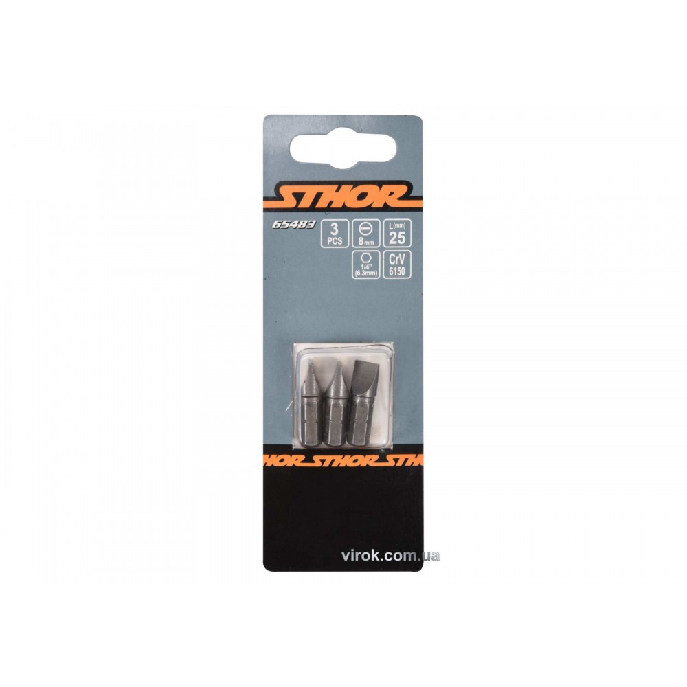Викруткова насадка SL8 - 1/4" STHOR довжиною 25 мм, призначена для використання з шуруповертами та гайковертами. Фрезерований профіль з піскоструйною обробкою, захищений антикорозійним покриттям.