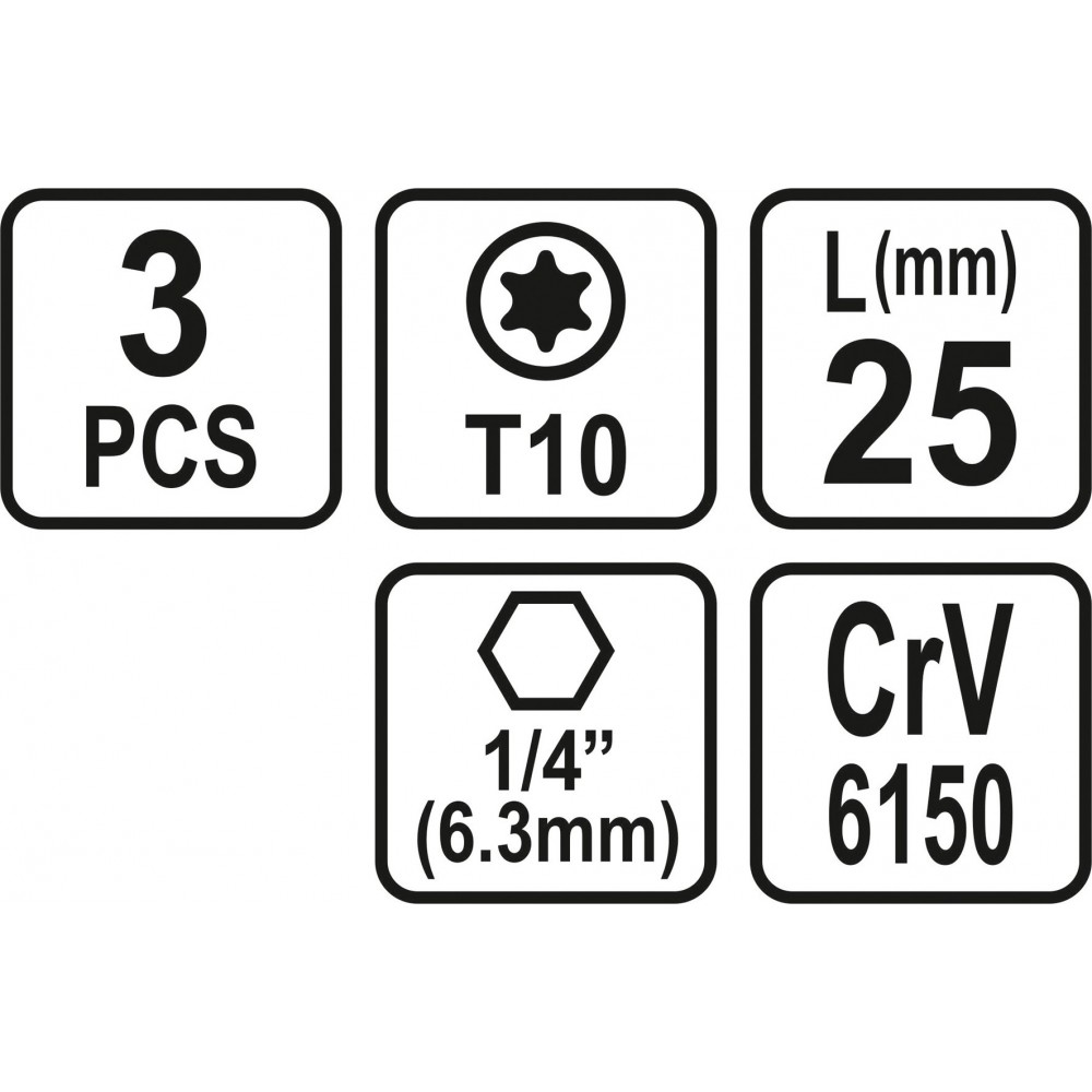 Викруткова насадка T10 - 1/4" STHOR довжиною 25 мм, призначена для використання з шуруповертами та гайковертами. Фрезерований профіль з піскоструйною обробкою, захищений антикорозійним покриттям.