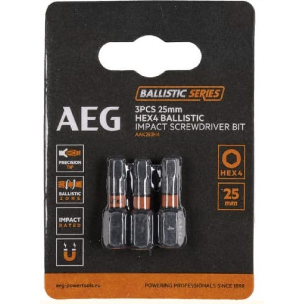 Біти ударні AAK253H4 (3 шт; HEX4; 25 мм) AEG 4932479178 призначені для роботи з ударними шуруповертами та гайковертами при монтажі/демонтажі кріплення.