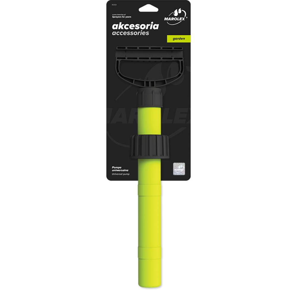 Высокопроизводительный ручной насос был спроектирован так, чтобы было достаточно нескольких движений, чтобы накачать 12-литровый опрыскиватель. Насос оснащен широкой рукояткой и креплениями для штанг диаметром 8 и 12 мм.