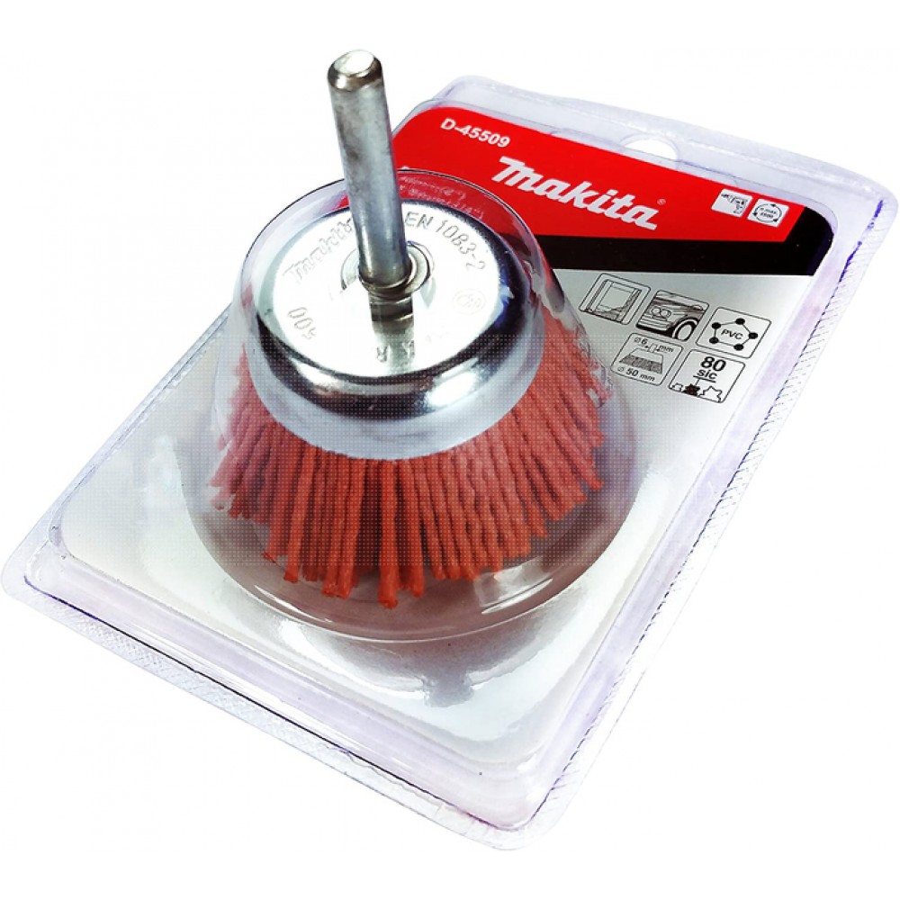 Опис Нейлонова чашкова щітка Makita для грубої очистки 50х6мм, D-45509