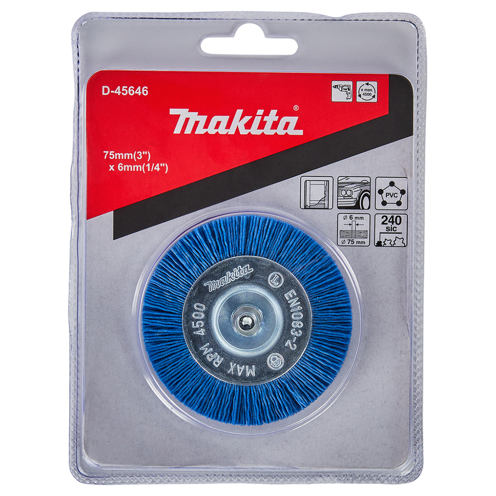 Опис Нейлонова конічна щітка для кінцевої обробки Makita 75х6мм, D-45646