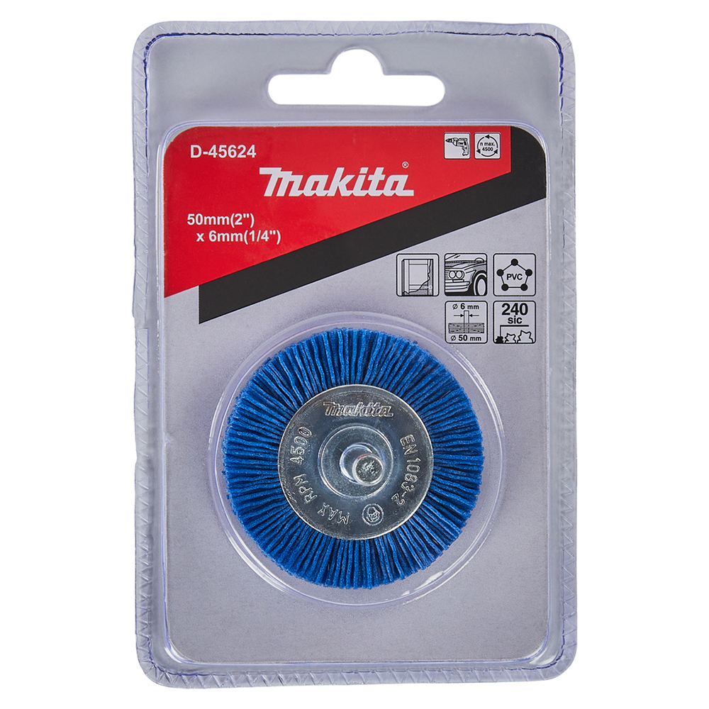 Опис Нейлонова конічна щітка Makita для кінцевої обробки 50х6мм, D-45624