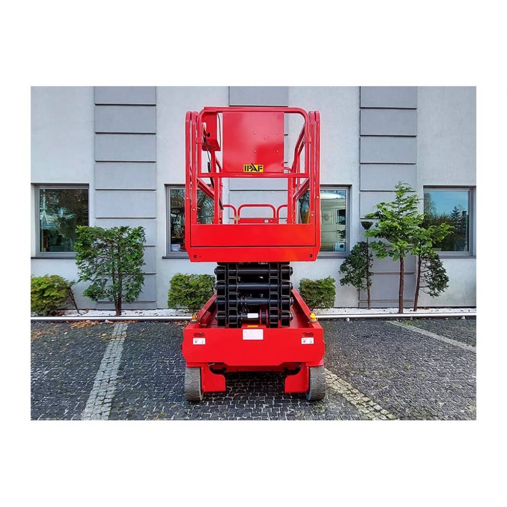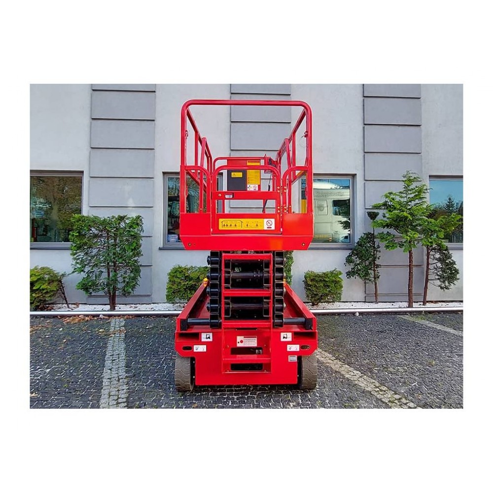 Для безпечності використання платформа має захисну огорожу і рифлене покриття для кращого зчеплення зі взуттям. При збої живлення вмикається система аварійного опускання платформи. Безкамерні колеса з приводом 2WD не залишають слідів на підлозі і дозволяють працювати на схилах до 25%. Для фіксації підйомника є електромагнітне гальмо. Відсутність викидів дозволяє використовувати цей підйомник для роботи на висоті у закритих приміщеннях, що робить його універсальним для різних застосувань.