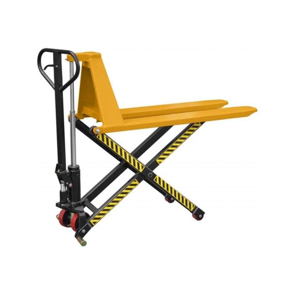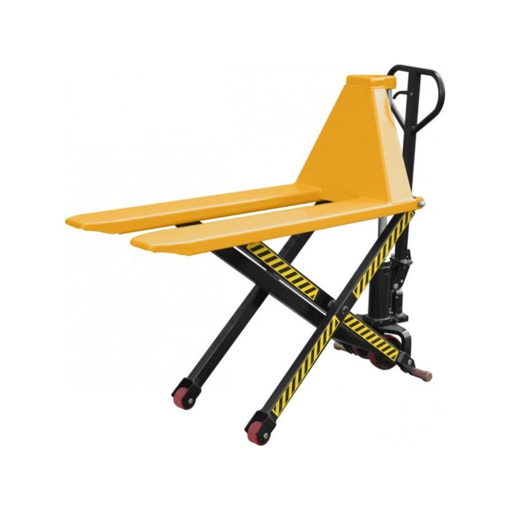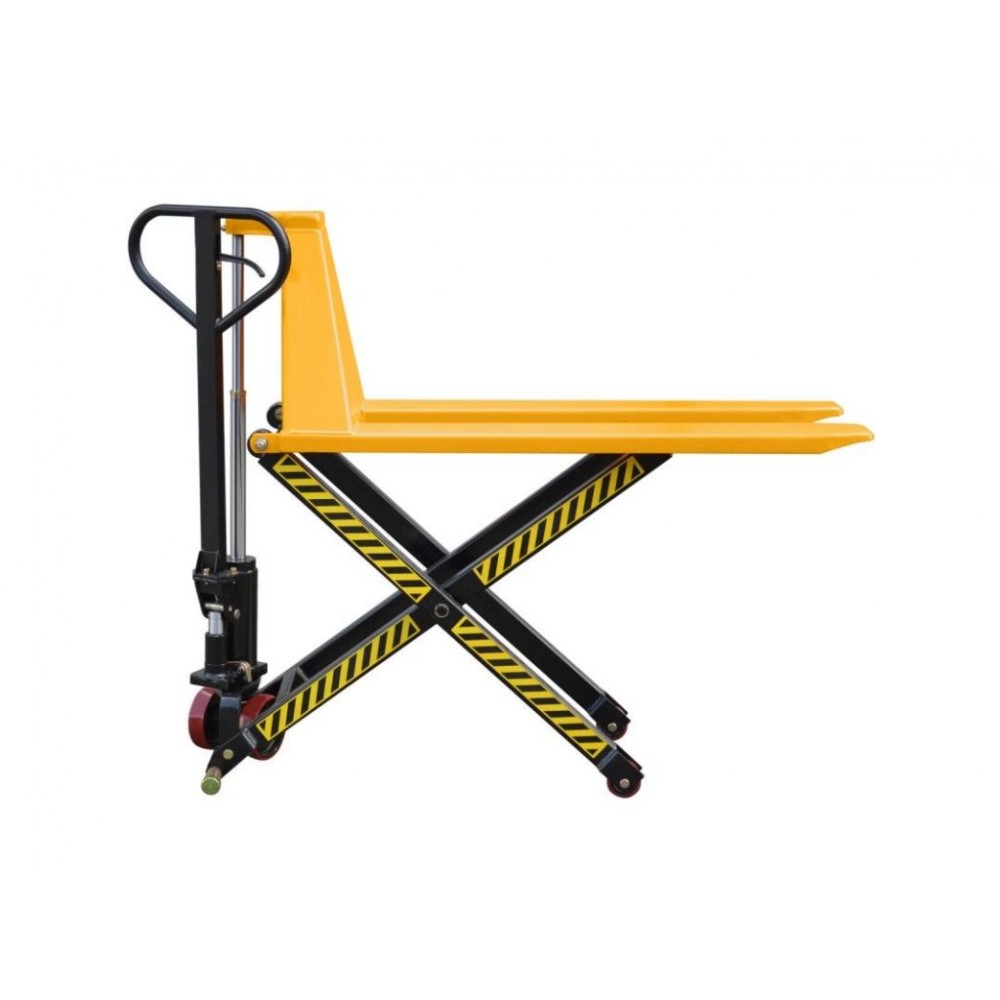 Для безпеки при підйомі вище 400 мм колеса ножичного візка автоматично блокуються, що унеможливлює його переміщення.