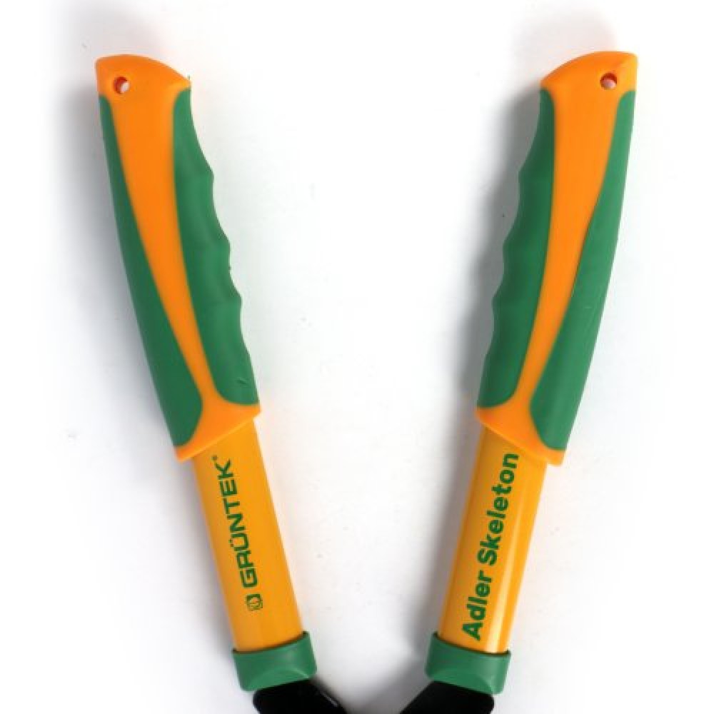 Виготовлені різальні частини садових ножиць GRUNTEK Adler Skeleton із загартованої високовуглецевої сталі 65 MN, завдяки чому вони довше залишаються гострими. Леза додатково мають NON-Stick покриття, що перешкоджає налипання зрізаних гілок, тонкої кори та листя.