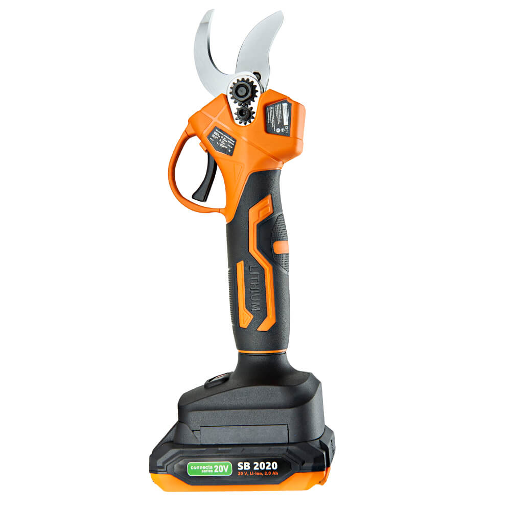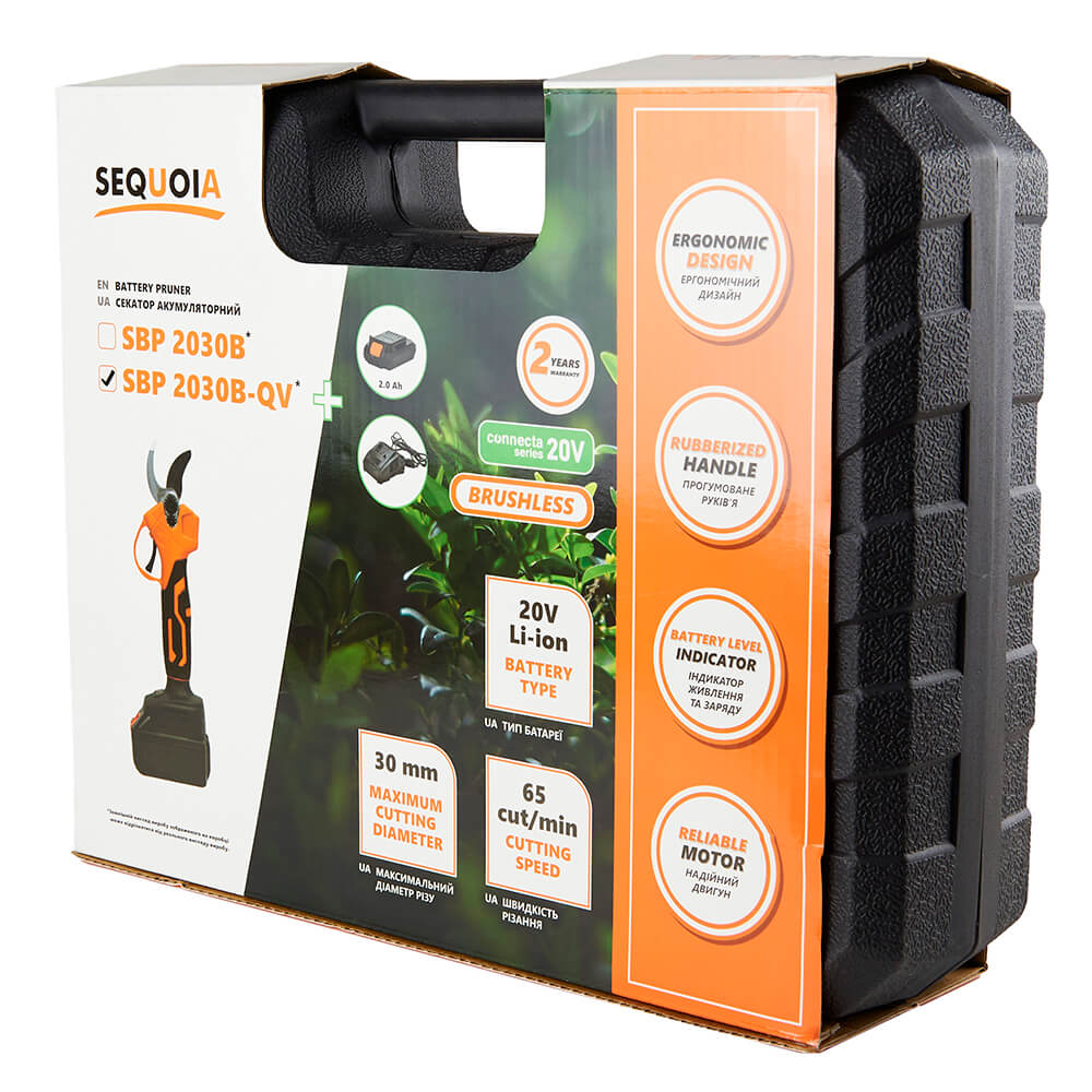 ✔ Акумуляторний секатор (ножиці садові) SEQUOIA SBP2030B живиться від літій-іонного акумулятора 20 В, єдиної акумуляторної системи SEQUOIA CONNECTA SERIES 20V.