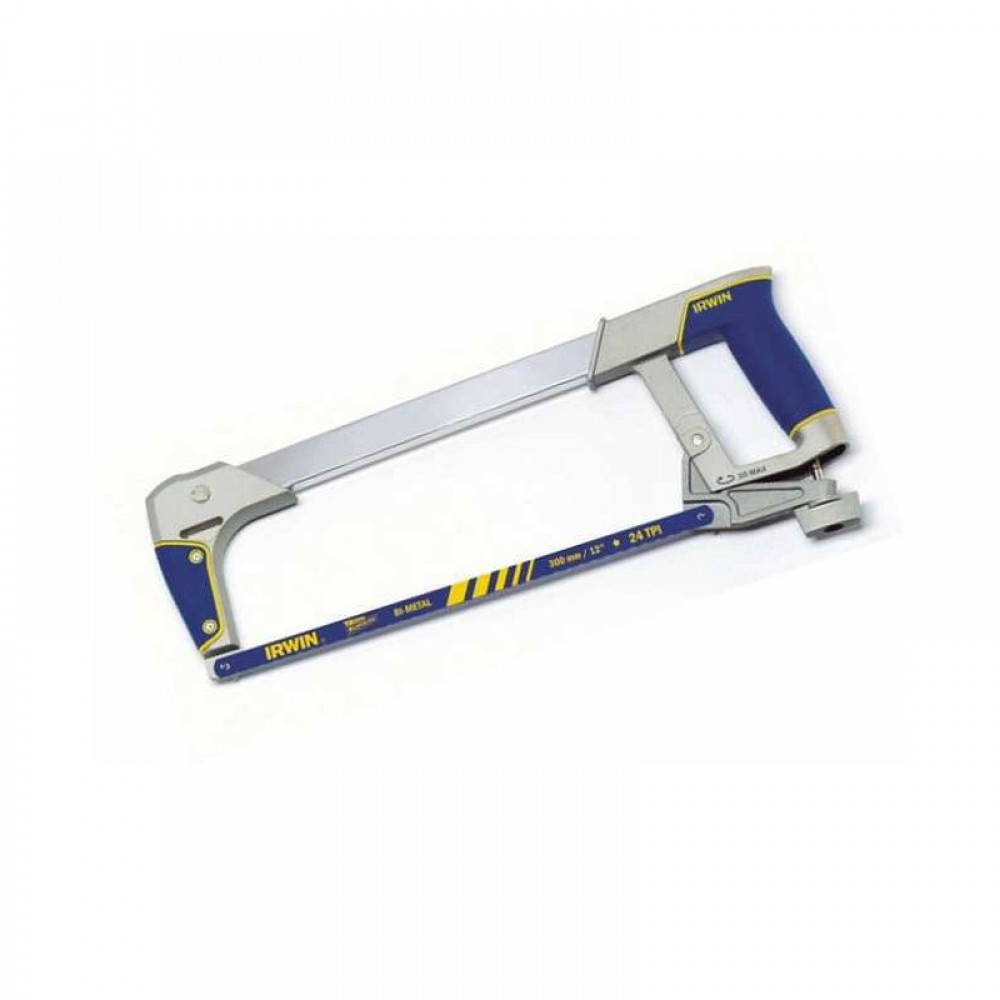 Ножівка з металу 300мм I-125, IRWIN Ножівки по металу IRWIN створені для задоволення потреб професіонала. Робота з ножівками IRWIN виходить швидкою та легкою. Міцна рама із системою натягу полотна для важких умов експлуатації, здатна витримувати натяг полотна понад 125 кг для забезпечення точного різання. Металевий натяжний механізм для тривалого використання інструменту. Вбудоване сховище для зберігання запасних полотен. Кріплення полотна під кутом 55 - 90 для різання великих заготовок. Відсік для вставки полотна у торець рами, що полегшує роботу в обмеженому просторі. Ручки Soft Touch забезпечують зручне захоплення при пилянні і запобігають зісковзування рук. Ножівка укомплектована одним біметалічним полотном по металу 300мм/24TPI