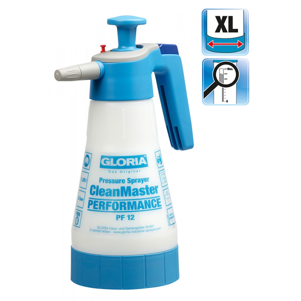 Пульверизатор Gloria CleanMaster PF 12 - невеликий пристрій для розпилення кислотних і лужних чистячих засобів під час прибирання. Представлена модель обладнана спеціальним запобіжним клапаном, який запобігає розпорошення при випадковому натисканні пускової клавіші. Цей Обприскувач стійкий до речовин, які мають в своєму складі масла.