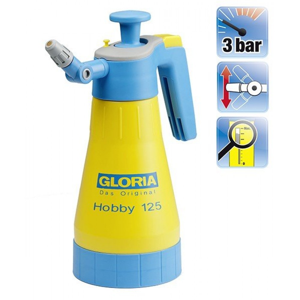 Пульверизатор Gloria Hobby 125 - невеликий пристрій для розпилення води та іншої неагресивної рідини. Завдяки робочому тиску 3 бар і ємності 1 л Обприскувач забезпечує максимально ефективне і рівномірне розпилення. Представлена модель може розпорошувати навіть в положенні догори дном.