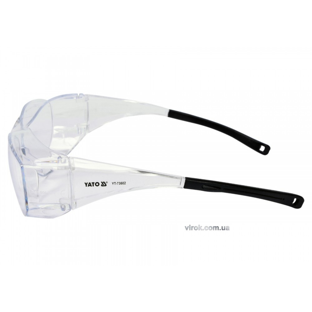 Захисні окуляри YATO відкриті прозорі призначені для захисту очей від впливу, який виникає при ручній та машинній обробці металу, деревини, пластику, кераміки.