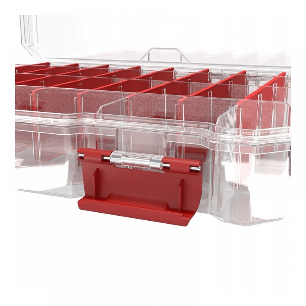 Також варто відзначити повністю прозору кришку, яка значно полегшує швидкий пошук необхідних інструментів, не відкриваючи органайзер. Це не тільки економить час, але й допомагає підтримувати більш організований робочий простір.