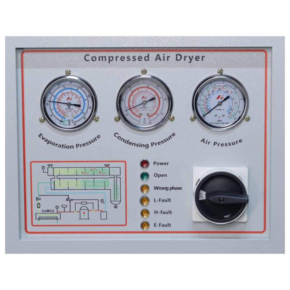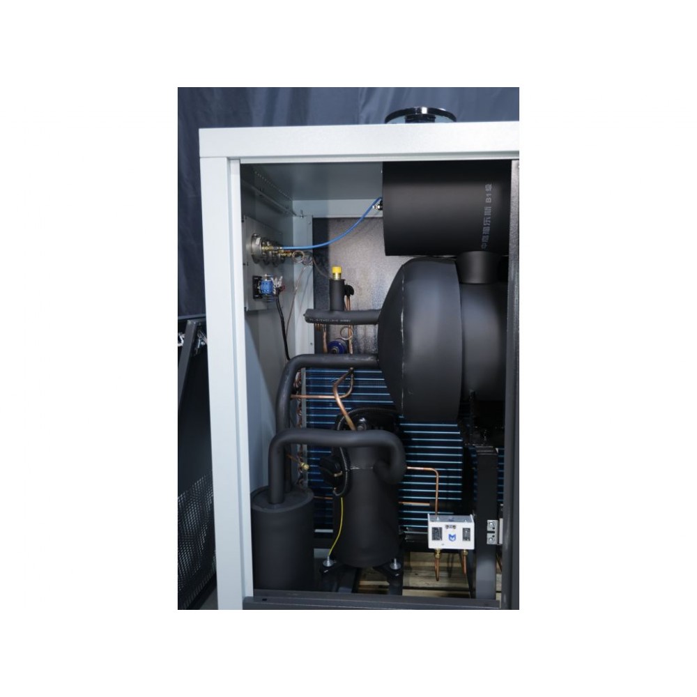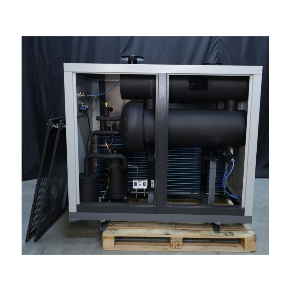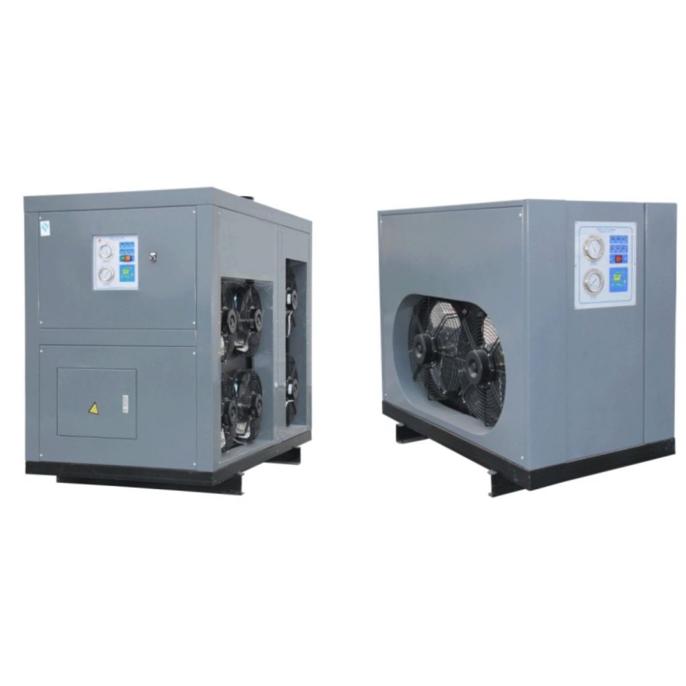 Рефрижераторний осушувач охолоджує стиснене повітря до певної температури, при якій волога конденсується та відводиться через дренажну систему. Потім охолоджене повітря знову нагрівається до кімнатної температури і подається на вихід.