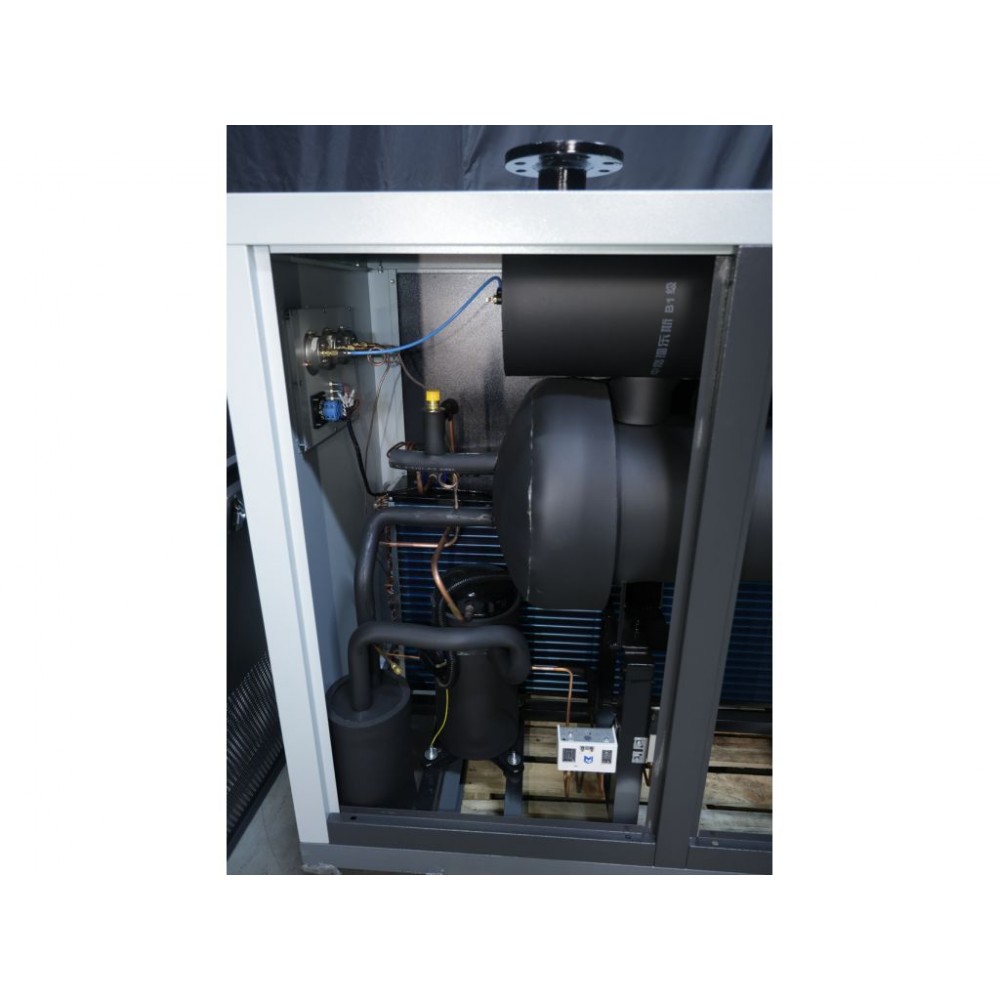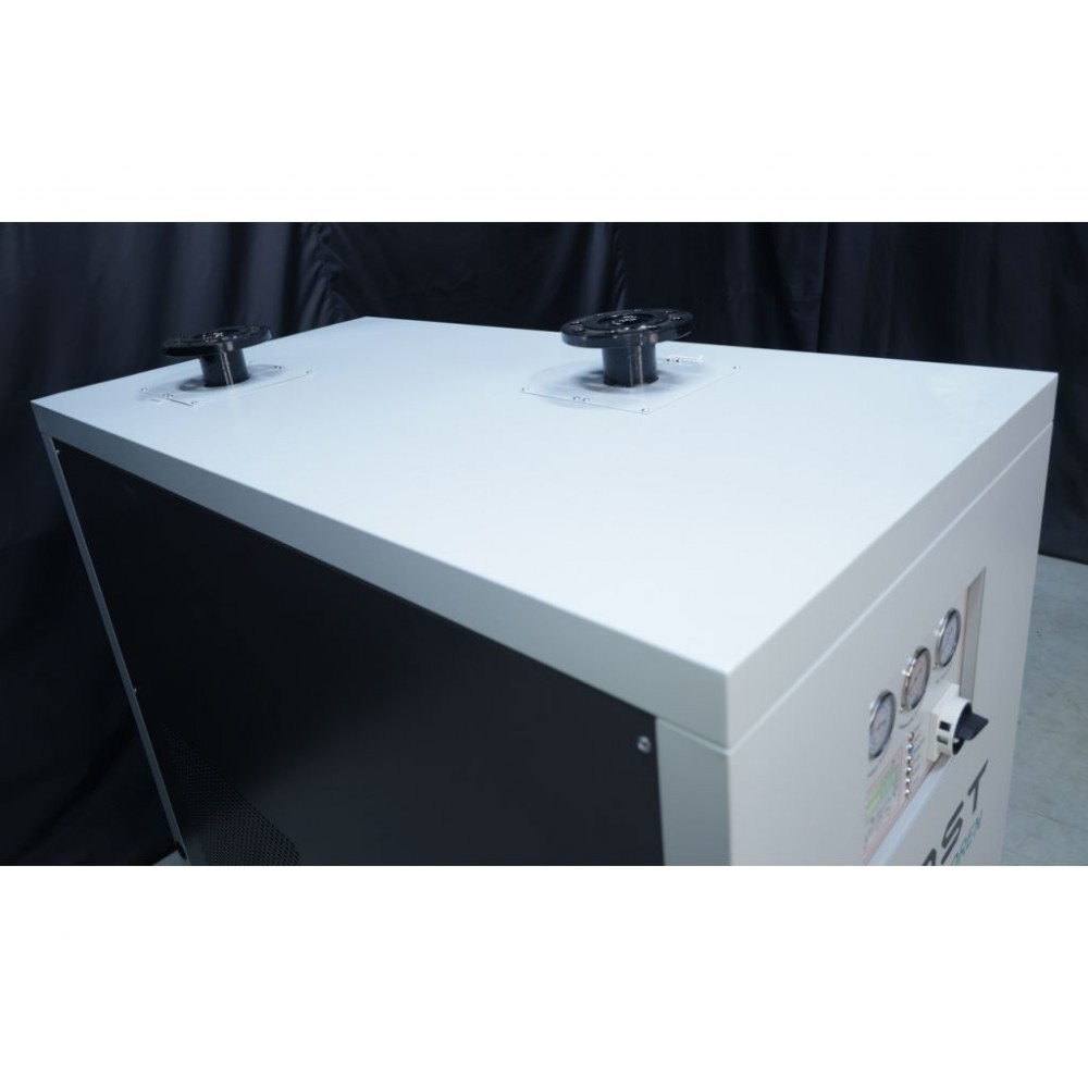 Осушувач легко під’єднується до компресора і живиться від загальнодоступної мережі 220 В. Оброблений шляхом пластифікації корпус циліндра запобігає вторинному забрудненню стисненого повітря іржею та подібними речовинами. Додатковими перевагами осушувача є тиха робота і економне споживання електроенергії. Корпус виготовлений з міцної сталі, стійкий до пошкоджень і корозії. Цей промисловий осушувач стисненого повітря відмінно підійде для виробництв, де потрібна велика кількість стисненого повітря високої якості.