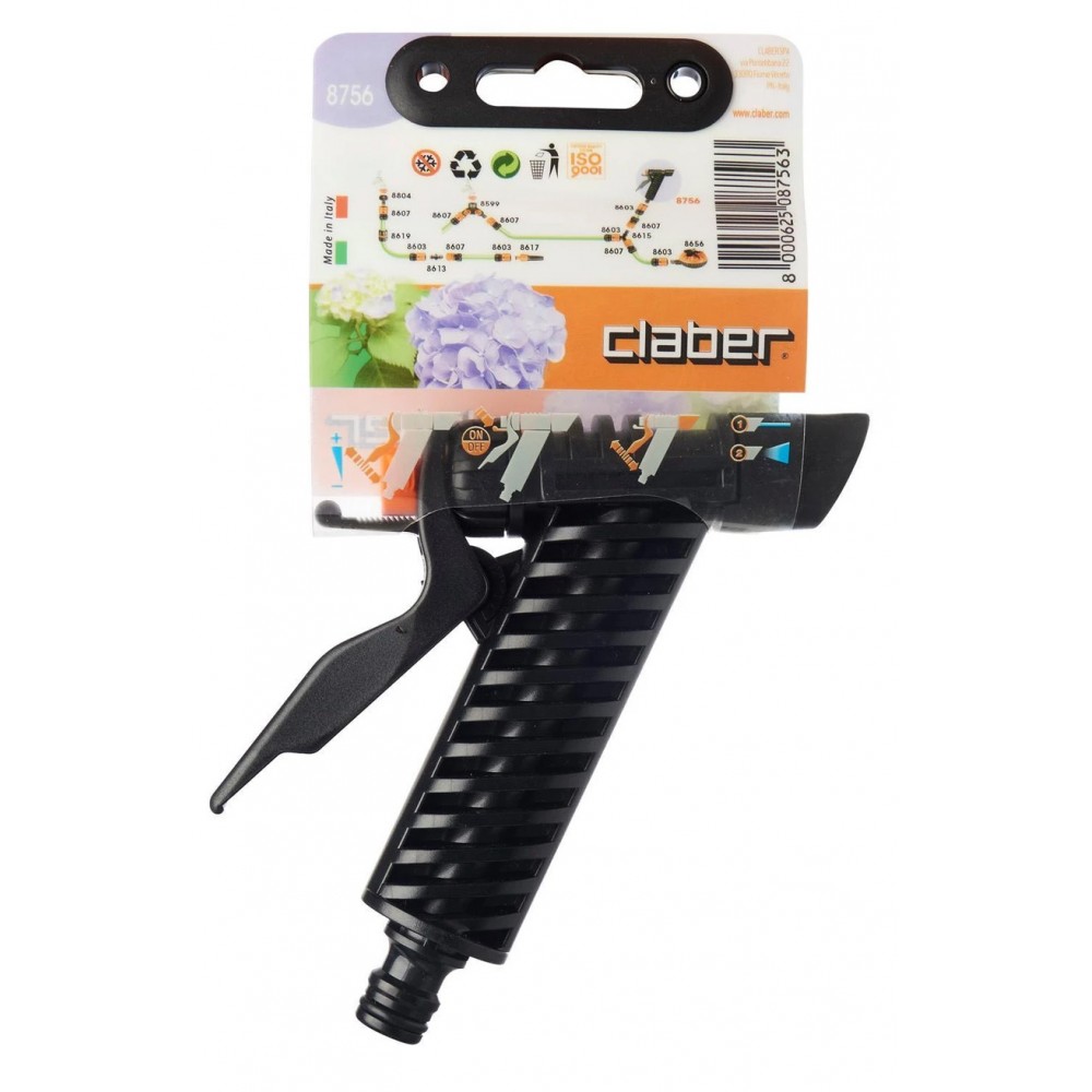 Пістолет-розпилювач Claber 8756 - пристрій для ефективного розпилення води під час поливу. Дана модель поставляється в упаковці, яку можна повісити на стіну і використовувати для подальшого зберігання пістолета. В асортименті також є модель Claber 8966, яка поставляється без упаковки із заводською етикеткою з картону. Призначення: полив саду, городу, квіткових клумб, газону, дачі.Переваги садового пістолета Claber 8756