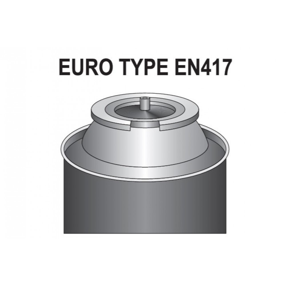 - тип газової ємності: одноразова, з різьбленням, самогерметизуюча, під прямим тиском, тип EN417