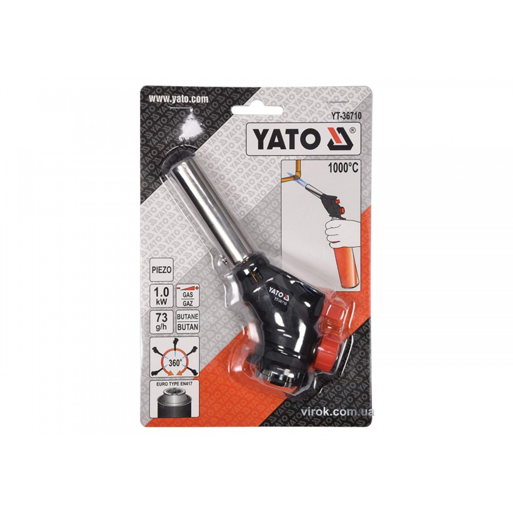 Газовий пальник YATO YT-36710 з п'єзозапалом для швидкої активації, призначений для пайки, нагріву, розморожування, сушки і т.д. Завдяки спеціальній конструкції може працювати в будь-якому положенні. Плавне регулювання розміру полум'я встановлюється за допомогою регулятора. Працює на бутановому газі з зовнішнього балона з роз'ємом EN417.