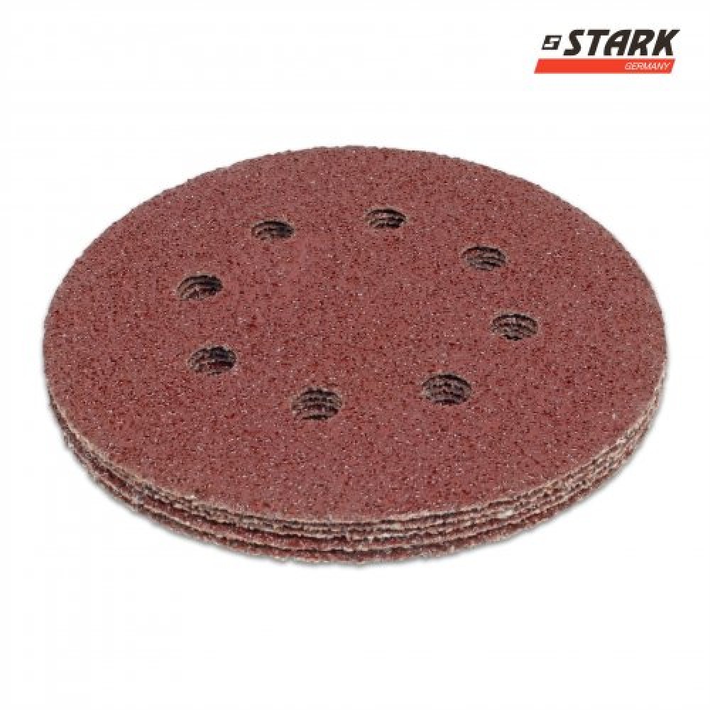 Папір шліфувальний Stark D125 мм з.40 5 шт. - самозачіпний папір на велкро основі, призначений для апаратного шліфування. Має 8 отворів для виведення стружки і пилу. Підходить для зачистки дерев'яних, металевих і інших поверхонь, покритих фарбою, шпаклівкою, лаком і т. ін.