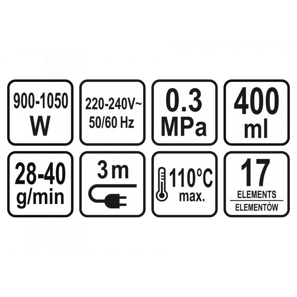 Пароочисник мережевий LUND 1000 Вт 400 мл 110 °С + 17 насадок