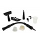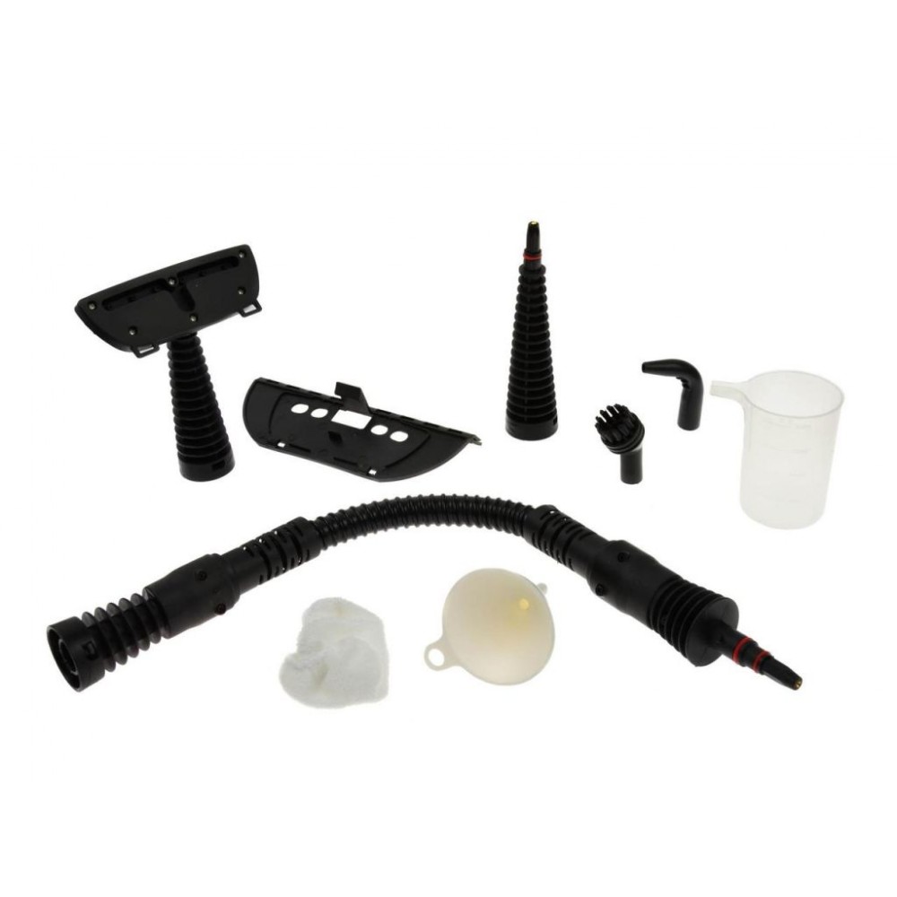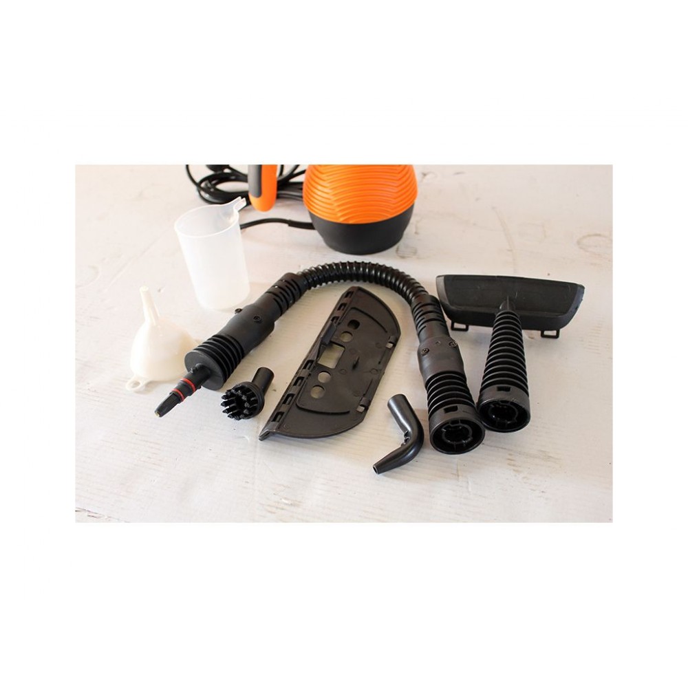 Компактный пароочиститель в комплекте с аксесуарами для быстрой и эффективной уборки в ванной, очищения вытяжек, кухонных плит, смесителей, швов плитки и прочих поверхностей.