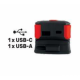 - Перехідник дозволяє заряджати акумуляторну техніку та гаджети (телефони, планшети, ліхтарики тощо) від акумулятора Штарк: у пристрої є вбудовані роз'єми USB-A та USB-C 5 В, 2,0 А.