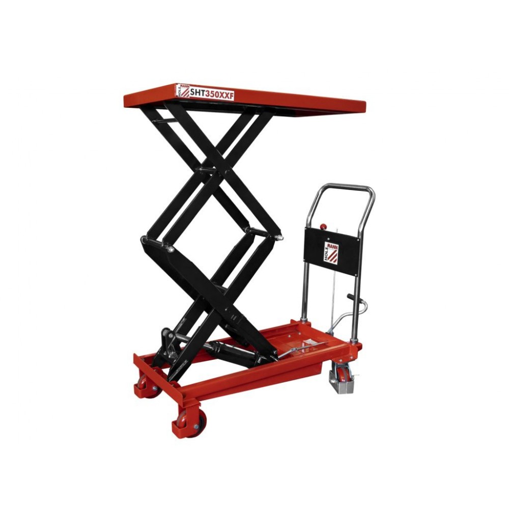 - Підйом робочого столу здійснюється за допомогою гідроциліндра з приводом від педального насоса, а опускання – за допомогою ручного важеля