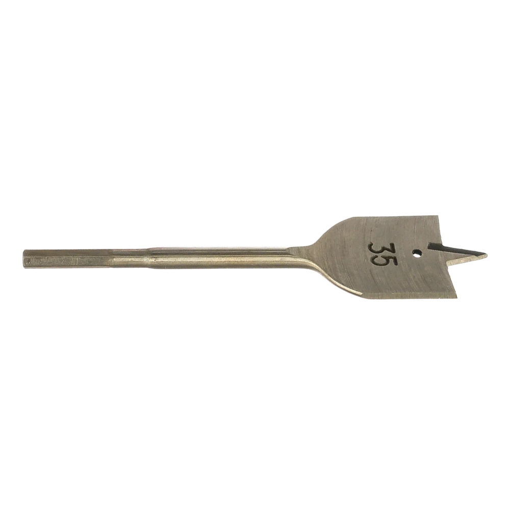 Це перове свердло чудово підходить для швидкого свердління отворів великого діаметра у м'яких та твердих породах дерева, а також у матеріалах на основі деревини, таких як ДСП, МДФ та фанера. Діаметр 35 мм робить його ідеальним для встановлення меблевої фурнітури, прокладання кабельних систем, монтажу інсталяцій та інших завдань, де потрібні широкі, але не надто глибокі отвори. Завжди використовуйте захисні окуляри та рукавички під час роботи для власної безпеки.