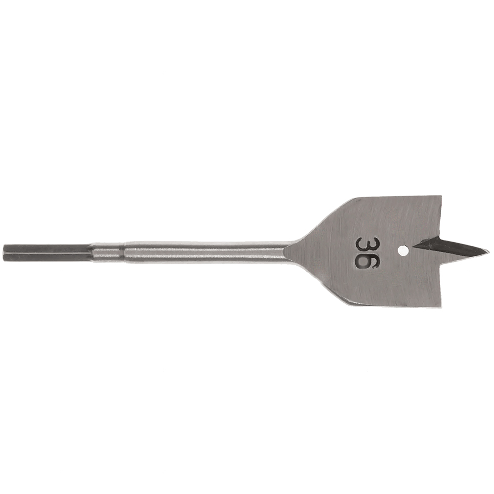 Це перове свердло чудово підходить для швидкого свердління отворів великого діаметра у м'яких та твердих породах дерева, а також у матеріалах на основі деревини, таких як ДСП, МДФ та фанера. Завдяки діаметру 36 мм, воно ідеально підходить для встановлення крупної меблевої фурнітури, прокладання об'ємних кабельних трас, вентиляційних систем, монтажу інсталяцій та інших завдань, де потрібні широкі отвори. Завдяки універсальному шестигранному хвостовику, свердло сумісне як з дрилями, так і з шурупокрутами. Завжди використовуйте захисні окуляри та рукавички під час роботи для власної безпеки.
