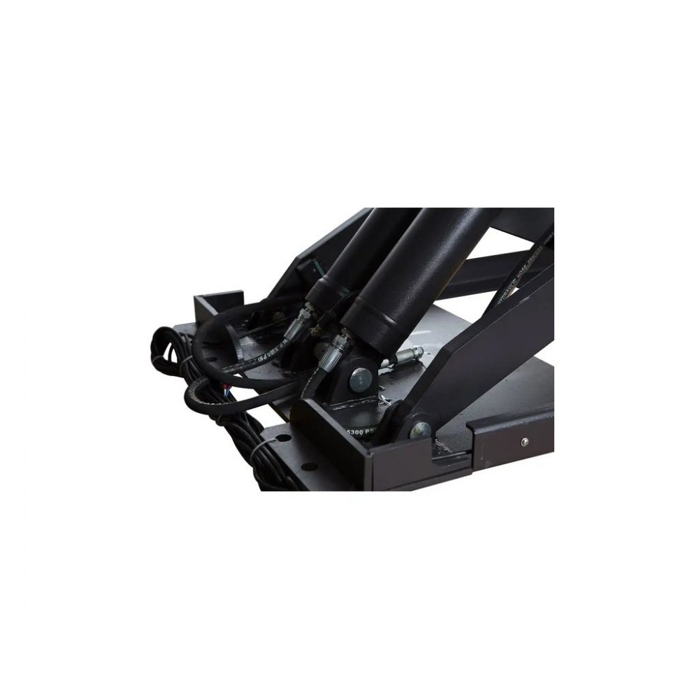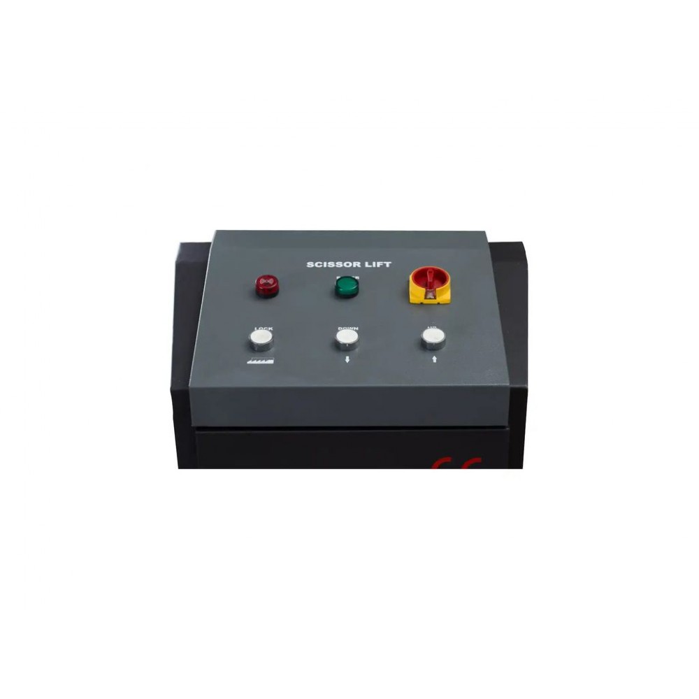 Дві незалежні платформи довжиною 1450 мм (без пандусів) дозволяють підняти автомобіль під потрібним кутом для обслуговування гальмівної системи, підвіски чи інших механізмів. Рифлені пандуси забезпечують легкий заїзд авто на платформи. Панель управління складається з 3 кнопок - підйом, опускання і фіксація у потрібному положенні, тому керування підйомником надзвичайно легке. Цей ножичний підйомник для СТО поставляється з 4 гумовими накладками для запобігання пошкодженню елементів автомобіля.